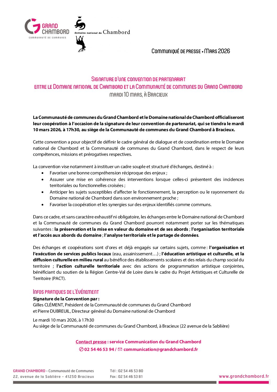 Signature d’une convention de partenariat avec le Domaine national de Chambord